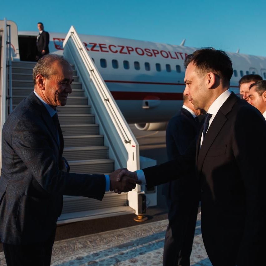 "We are strengthening Poland's relations with Asian countries - behind us are talks in 🇹🇯 Tajikistan. We are beginning a mission in 🇰🇷 Korea." (Source: Andrzej Domański X account)