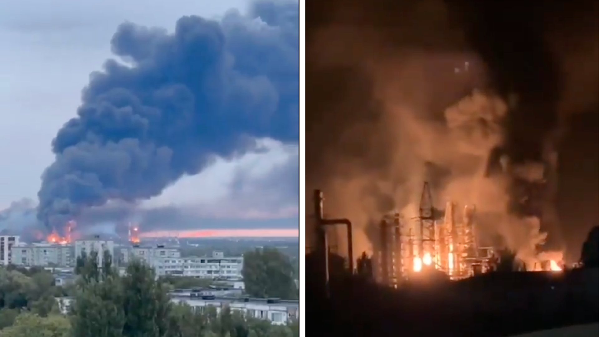 Another round of Ukrainian drone strikes hit key refineries last night, sparking fires in the Krasnodar and Samara regions. Large fires were caught on film.