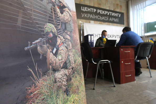 DNIPRO, UKRAINE - MARCH 28, 2024 - The city's second Ukrainian Army Recruitment Centre opens in Dnipro, central Ukraine. (Photo credit should read Mykola Miakshykov / Ukrinform/Future Publishing via Getty Images)