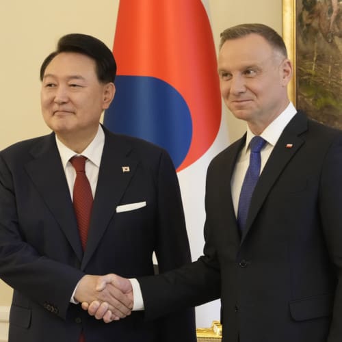 Polish President Andrzej Duda and his South Korean counterpart Yoon Suk Yeol…